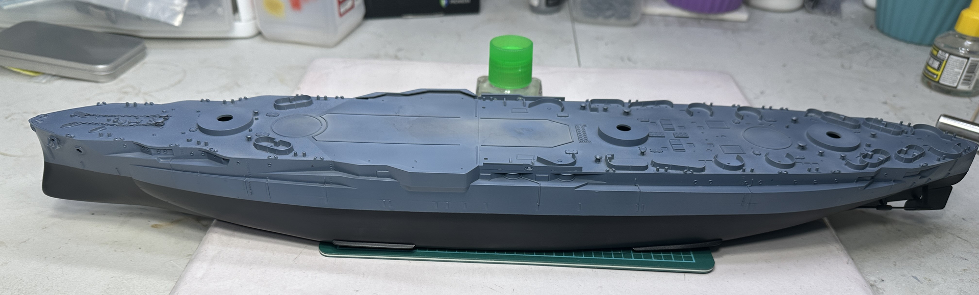 Slow going on Texas over the last few months but there is finally progress. I have put paint down on the hull and superstructure parts.