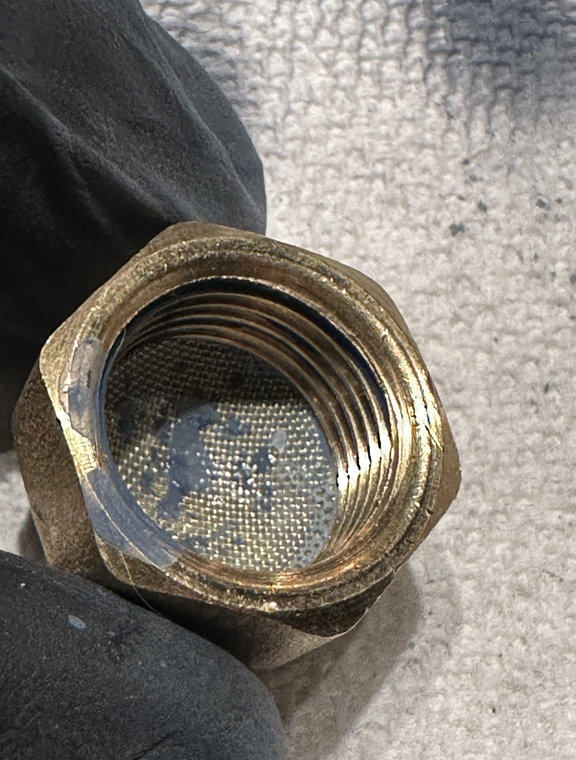 Using a brass nut and a pipe strainer I was able to make a pretty effective strainer for about $10 and which will last me forever. After using it I had no more issues. You can see how much crap was left behind after straining.