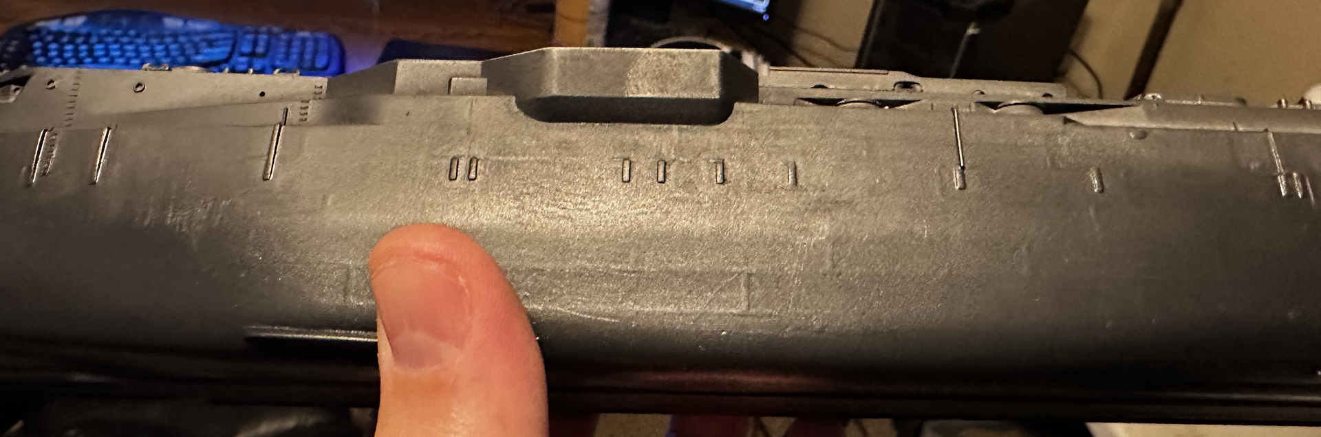 I also achieved what I wanted which was to leave just the faintest impression of plating. If you look at the ship directly side on it looks pretty smooth.