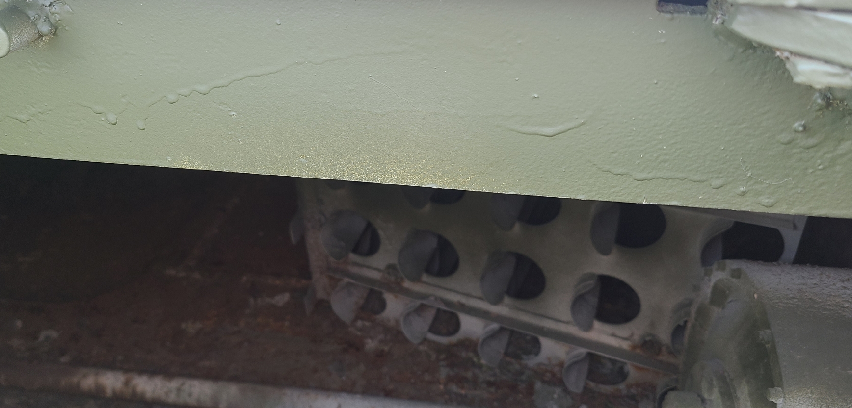 The transmission door is missing, so you can see inside from here. There is a Main ammunition racks. this racks has been moved to engine location. idk. There is no engine, transmission anything at all. so that’s why shackle is removed and changed something else.