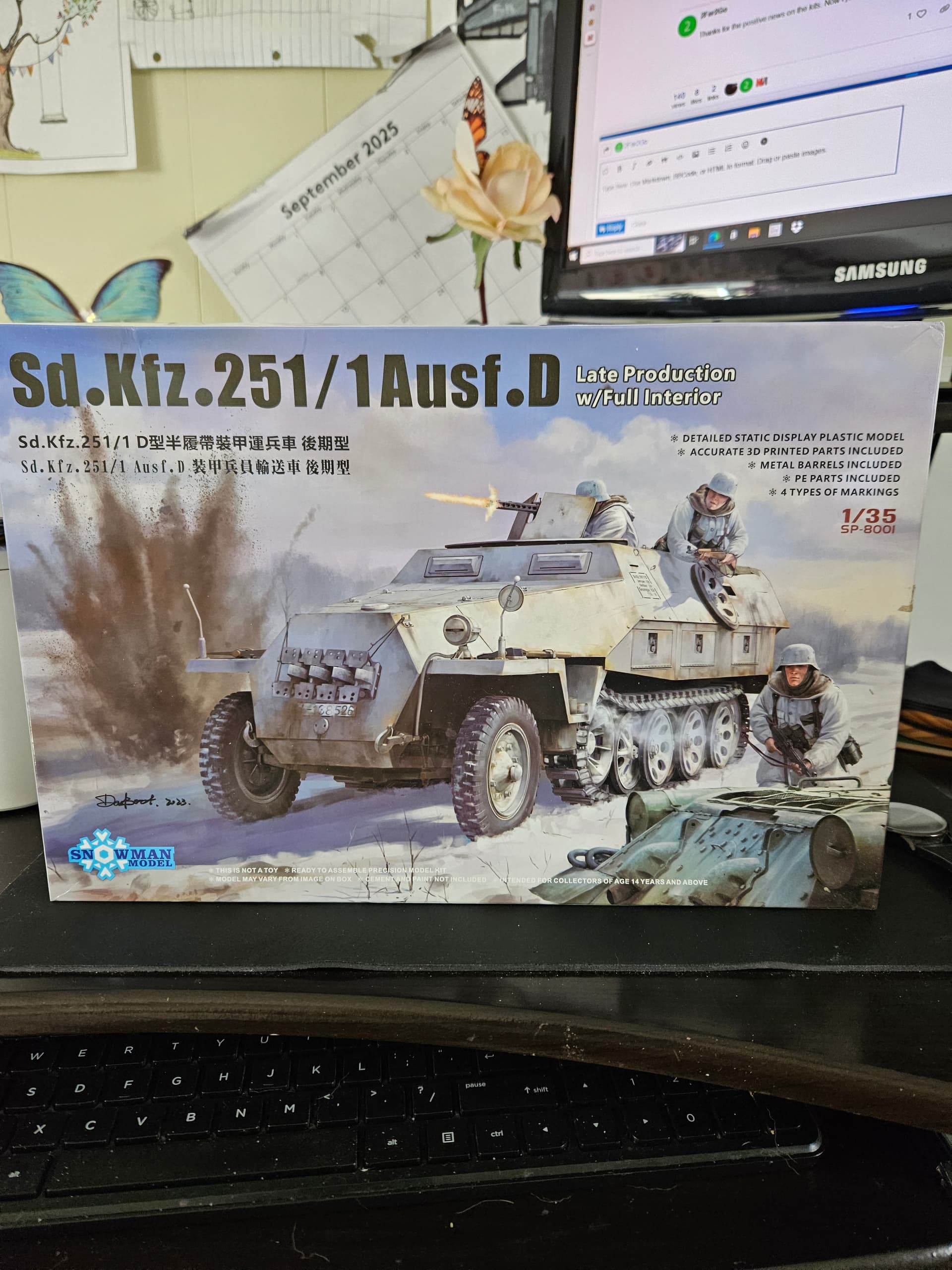www.squadron.com now has both versions of the Snowman (251/1 and Stuka zu Fuss) 1/35 Snowman Stuka zu Fuss Sd.Kfz.251/1 Ausf.D German Haltrack Plastic Model Kit - Squadron.com available. I recently got the Vespid version of the Stuka zu Fuss and Vespid and Snowman kits are identical.