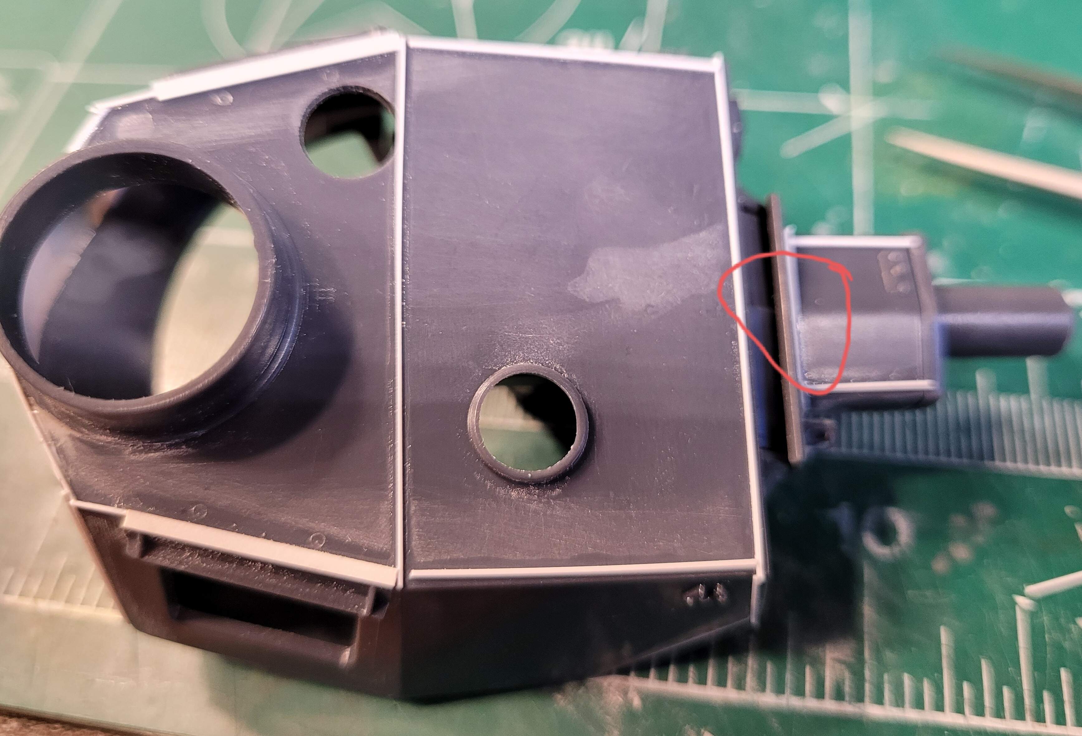 Playing around test fitting, discovered the internal gun cradle will have a seam exposed to the exterior.
