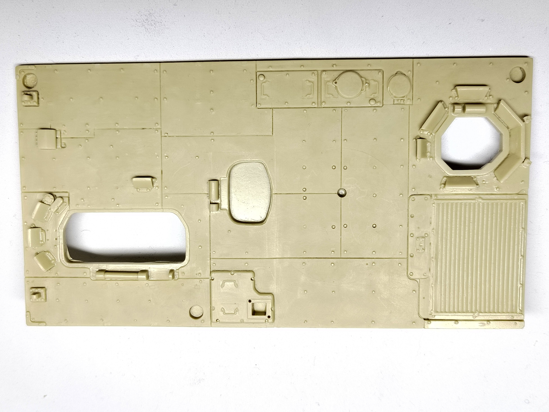 The preparation step for the interior is continuing. The engine wall which is wrong in the VBCI kit does not match the VPC variant. So I removed most of the details molded on. Nearly all the others will be modified. The turret wall needed to be removed too.