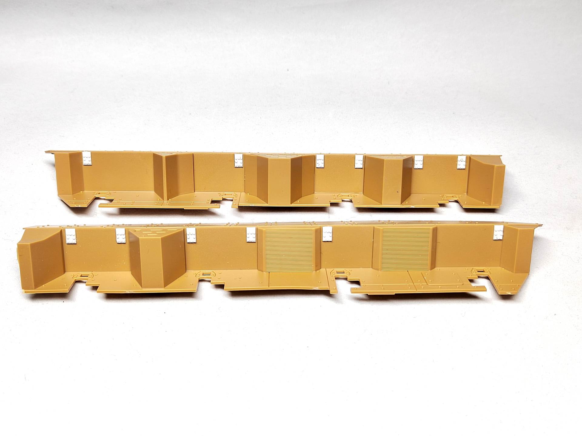Then I glued the sides to the hull and began working on the inside. The RHS has some details molded on that must be deleted. And both sides have a recess to be filled.