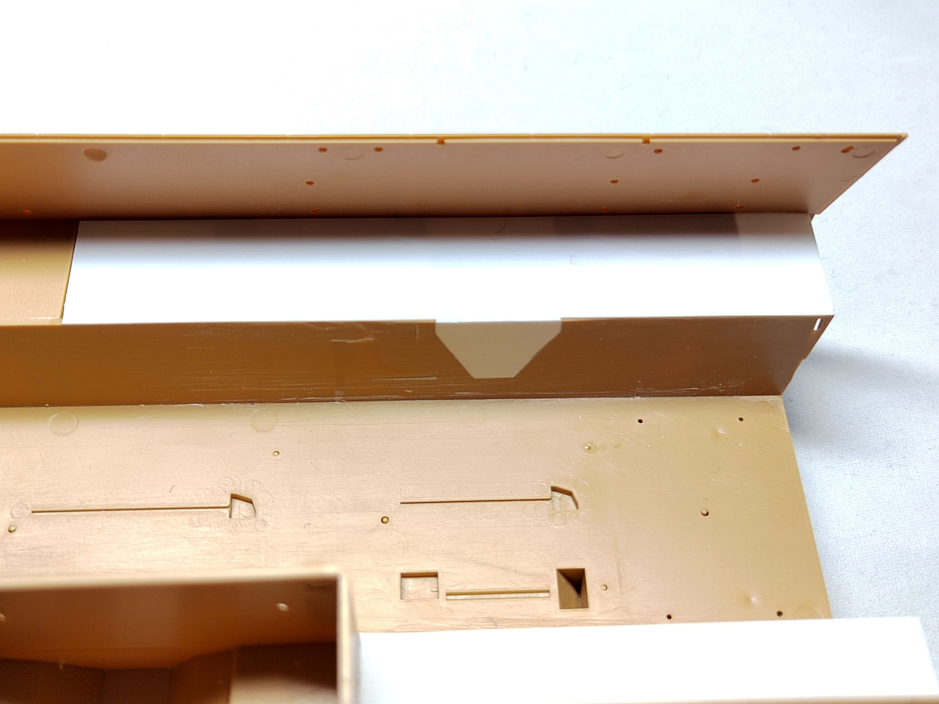 The holes on the horizontal parts will be filled with 0.25 mm styrene sheet.