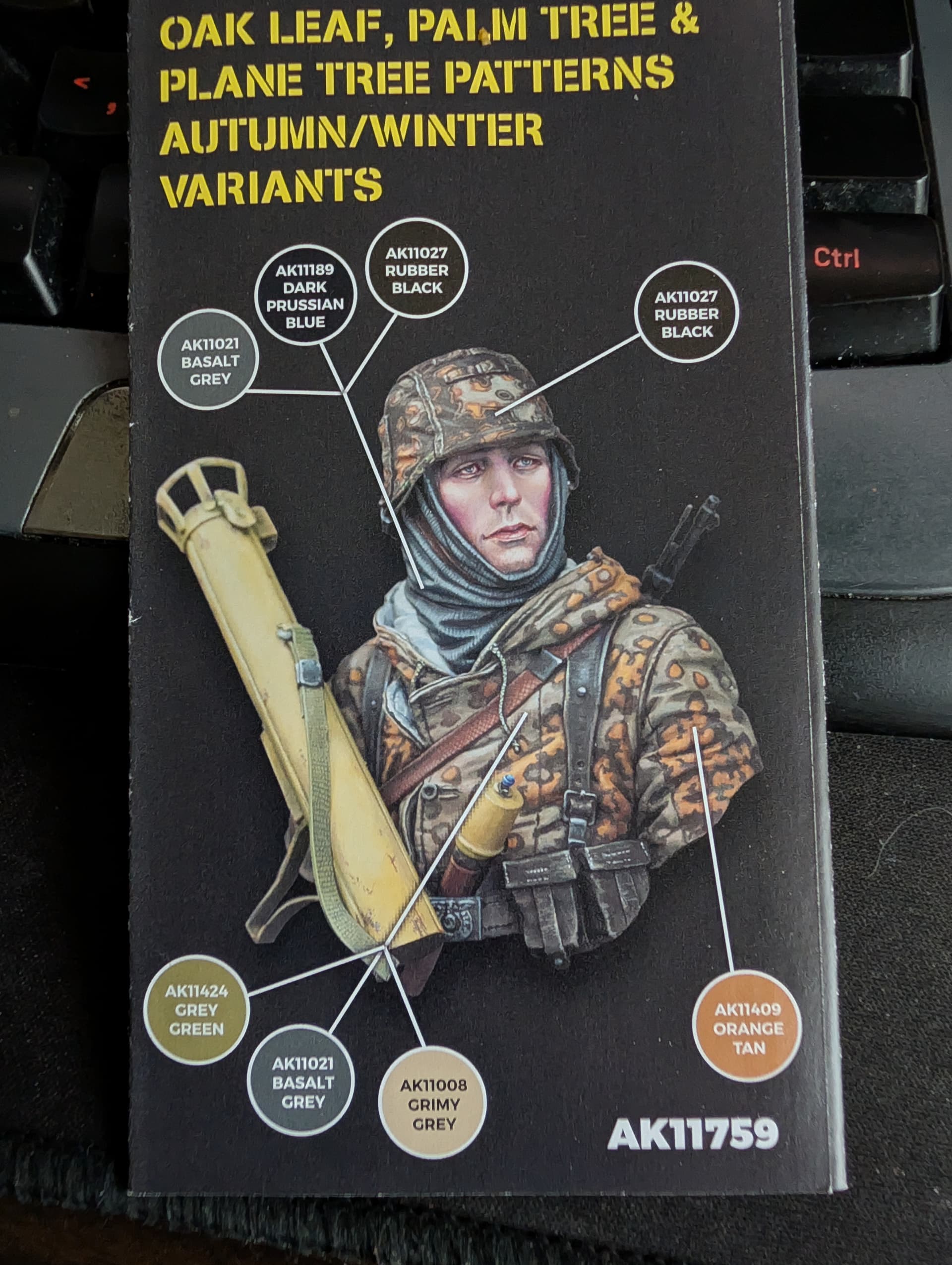 Ok, I decided to go for the AK set which seems nice enough. But the leaflet included is (at least for the Oak Leaf pattern) completely useless. The colors suggested for the base color are Grey Green, Basalt Grey and Grimey Grey. If following the logic of medium base, dark Shadow and light highlights, the colors used do not make sense at all.