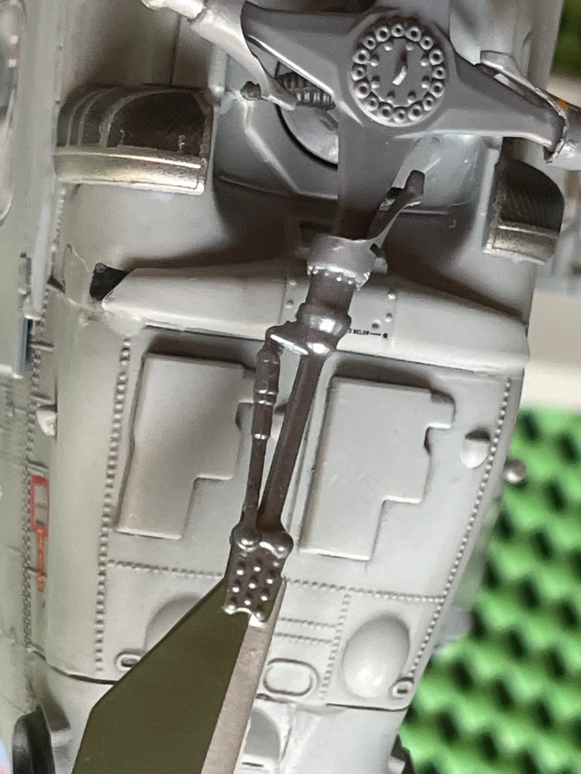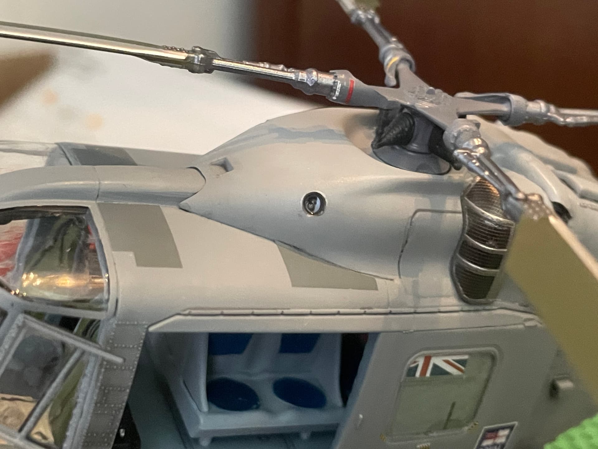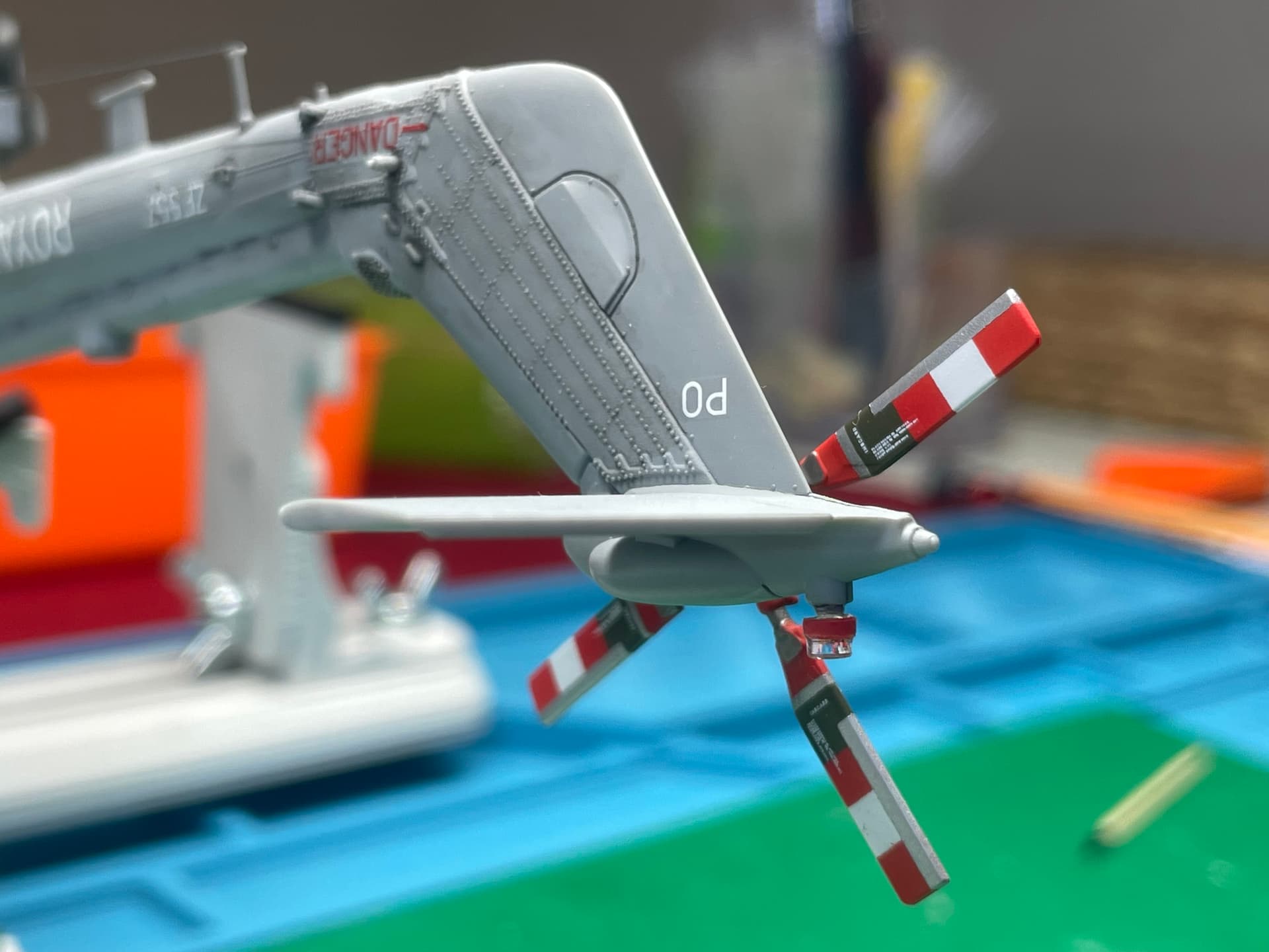 Before joining the tail section, I thought I’d somehow reproduce the rear rotor intake, which Airfix simply doesn’t show, but is actually covered by a mesh, like this: