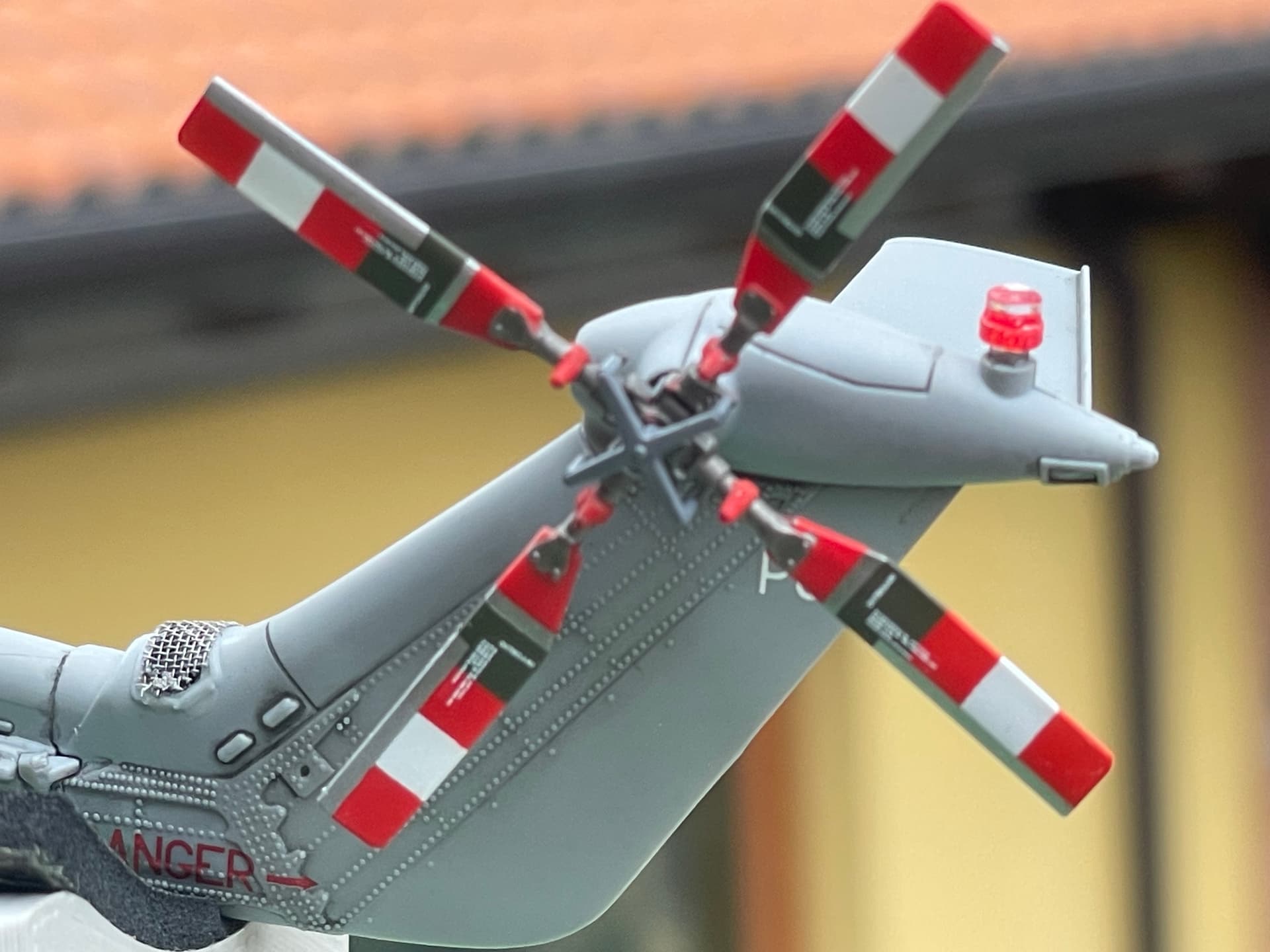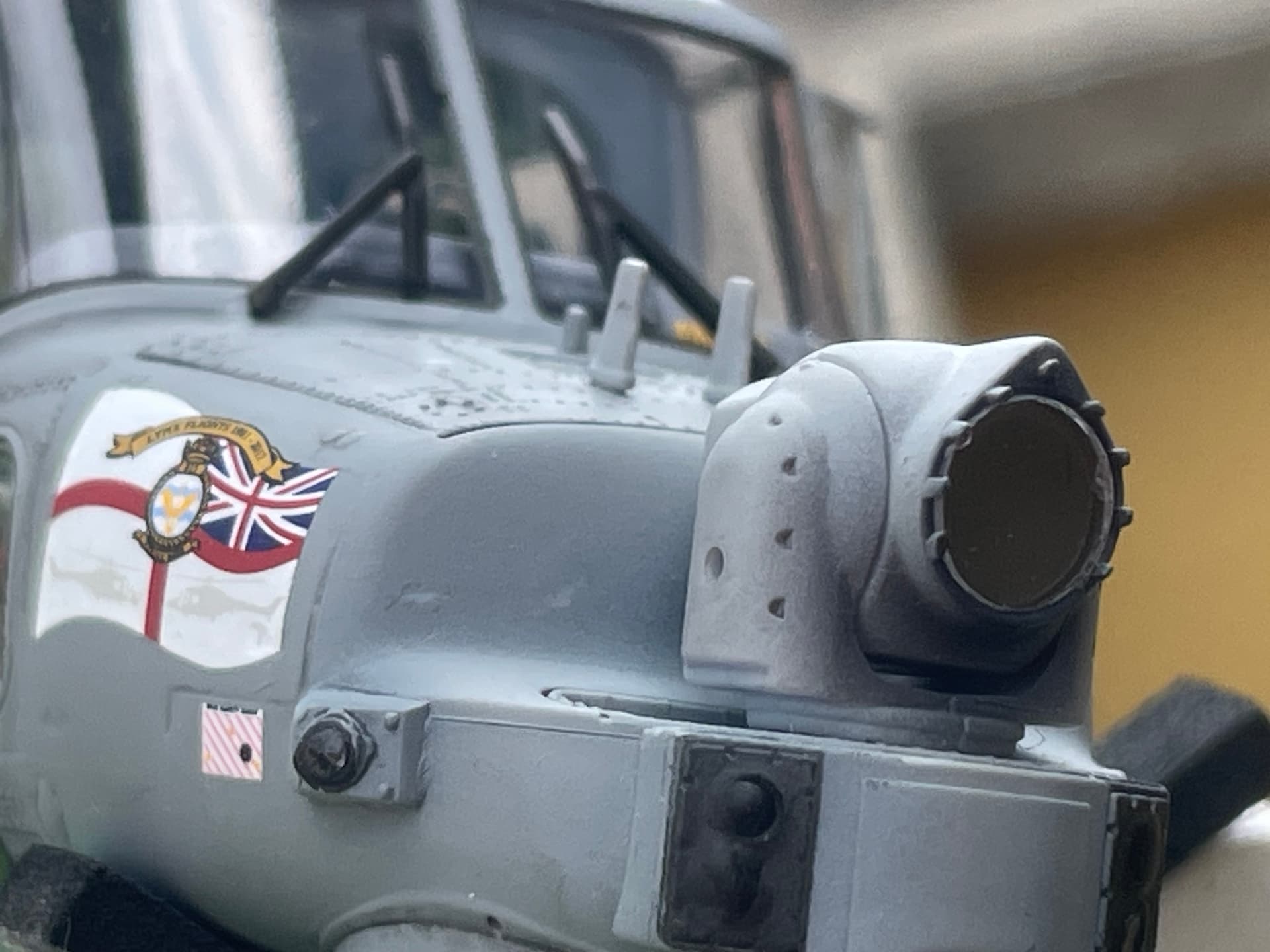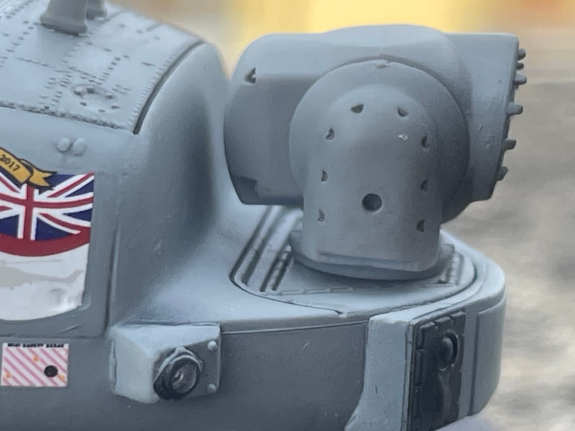 Before joining the tail section, I thought I’d somehow reproduce the rear rotor intake, which Airfix simply doesn’t show, but is actually covered by a mesh, like this: