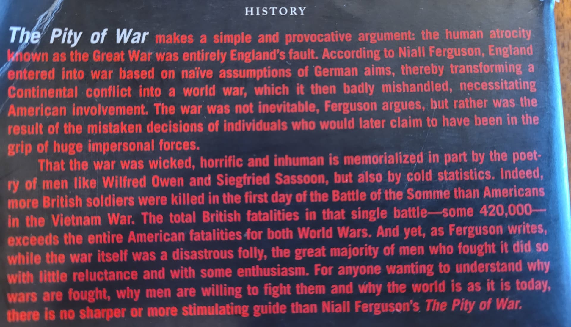 Anyway, moving on time for some revisionist WWI history by Niall Ferguson, The Pity of War.