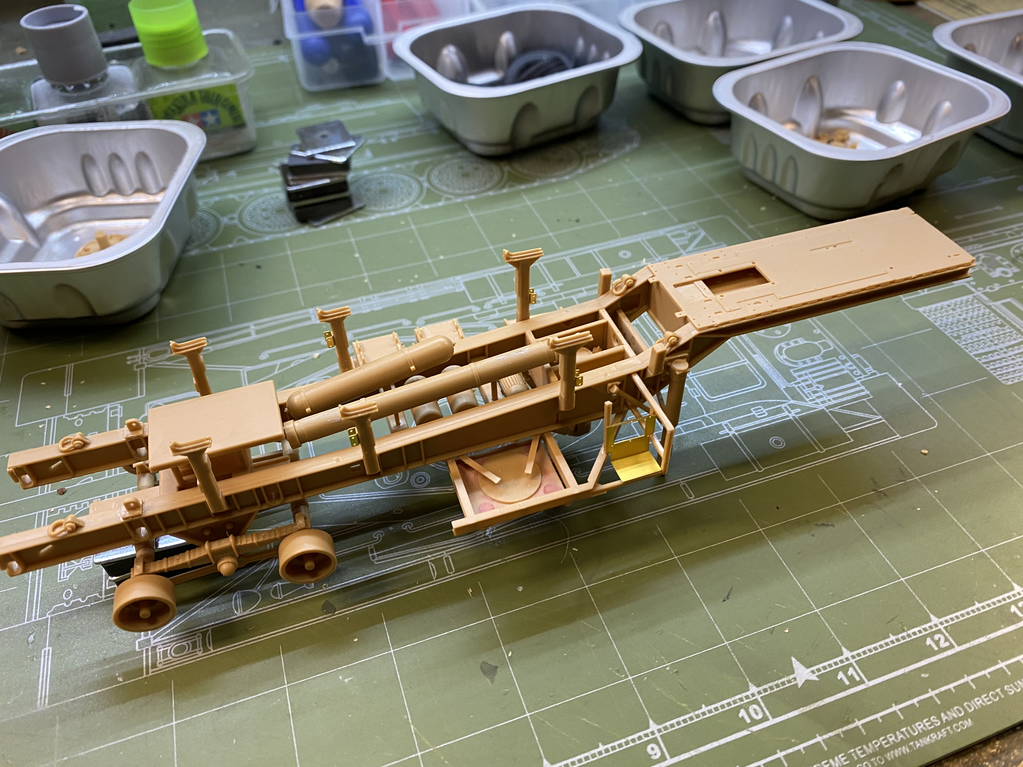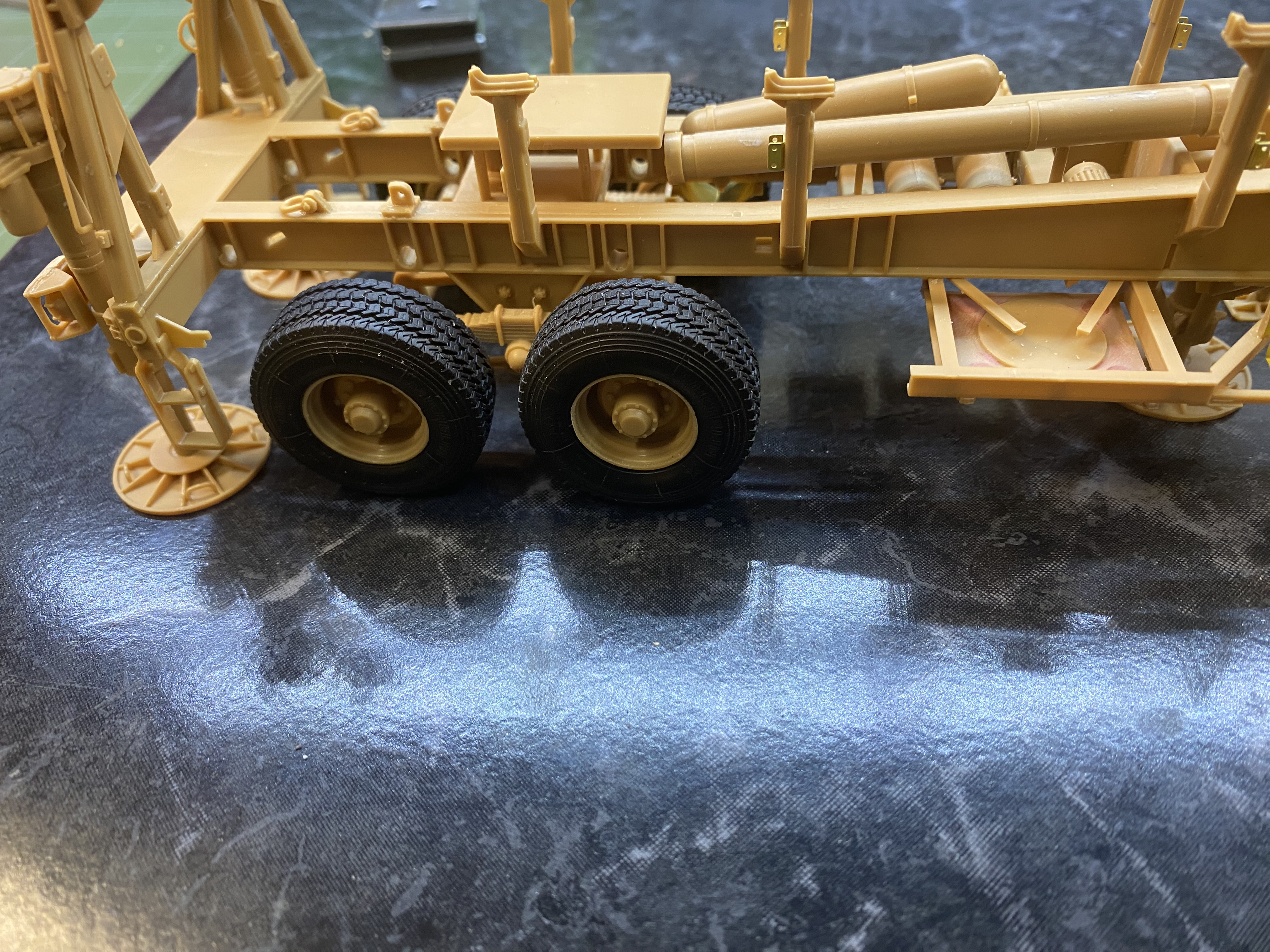 Built the rear jacks and azimuth ring supports for the missile and temporarily attached them to the rear of the ELT so I could permanently glue the front jack, rear jacks and trailer landing gear in the lowered position.