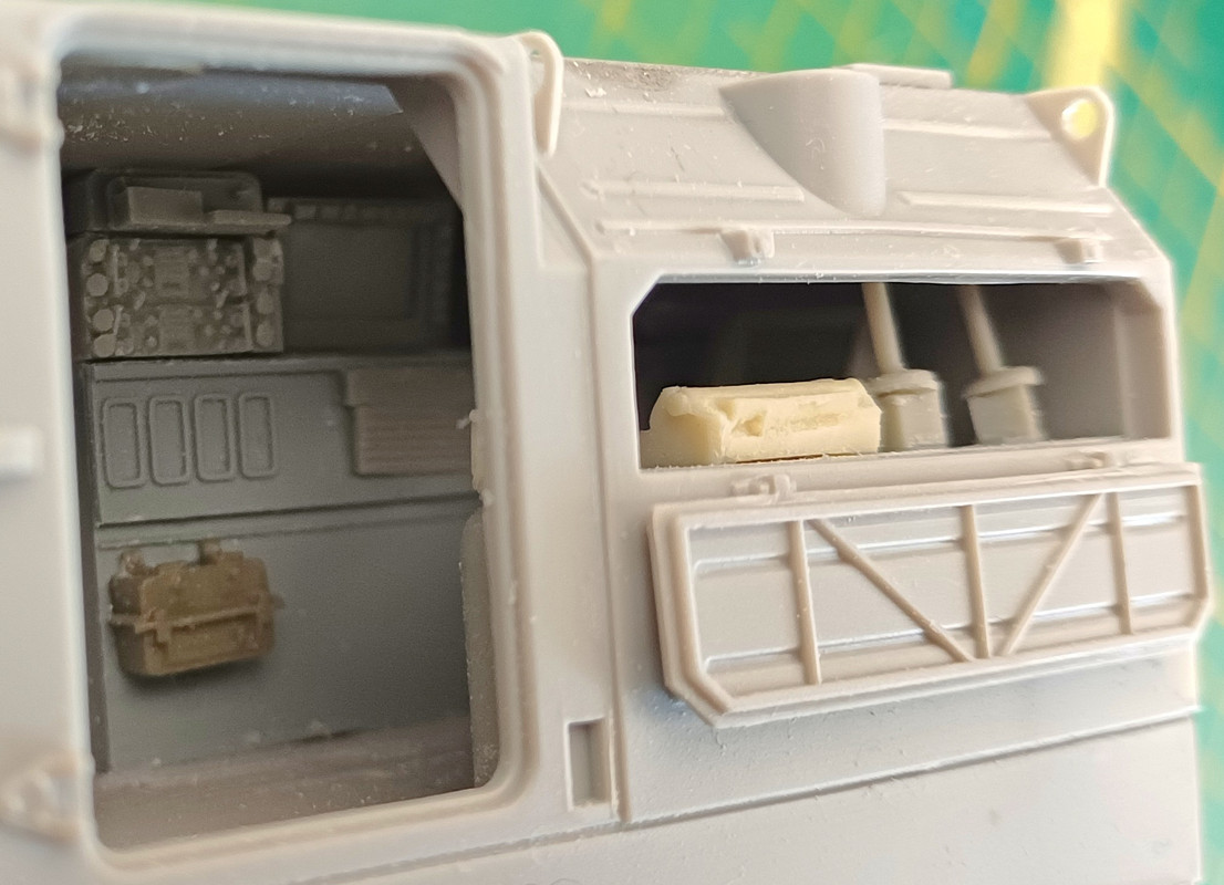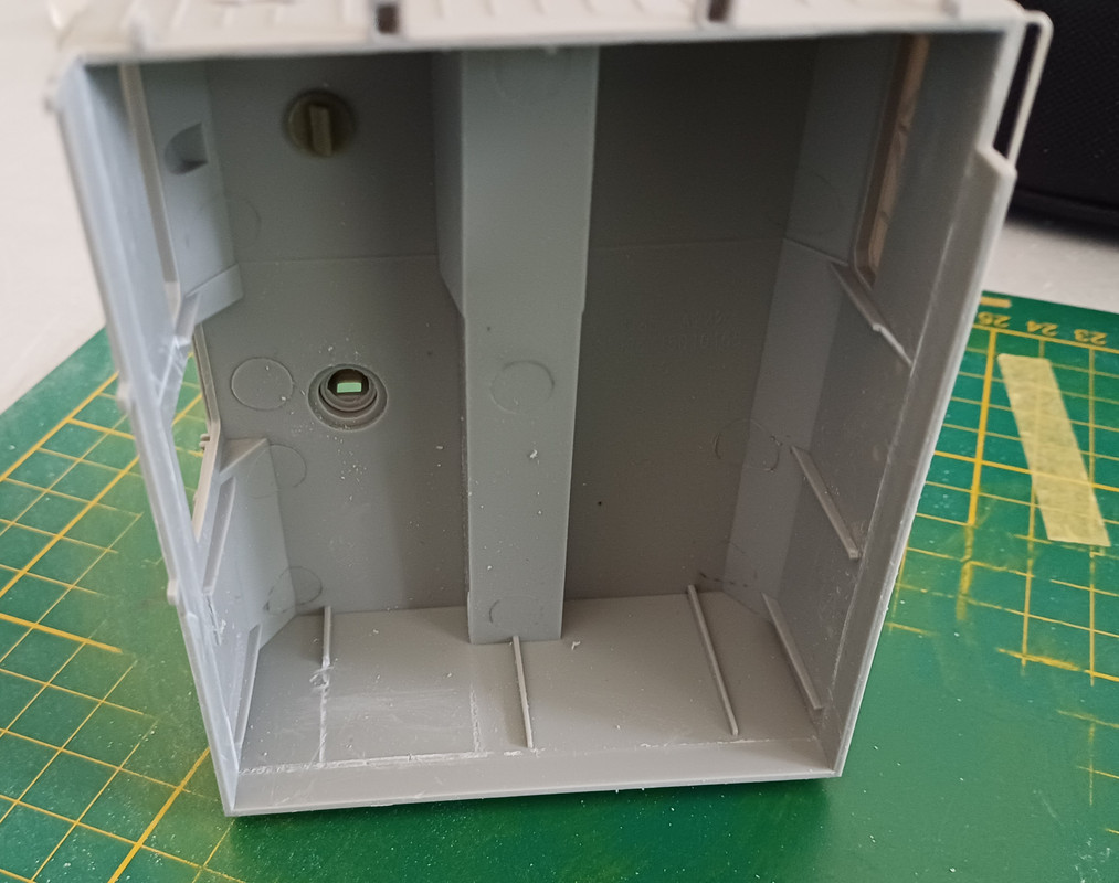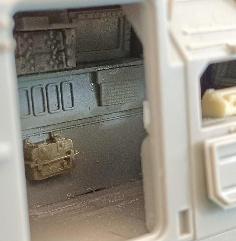 After all the work getting the interior together, the driver’s seat popped off while I was trying to fit the roof on. After trying to coax it back into place, I said “Screw it”, and glued the driver’s hatch shut.