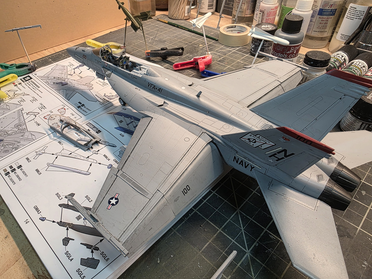 Added a gray Flory Wash to to hilite the details and to add a little grime,also worked on pylons and payload.
