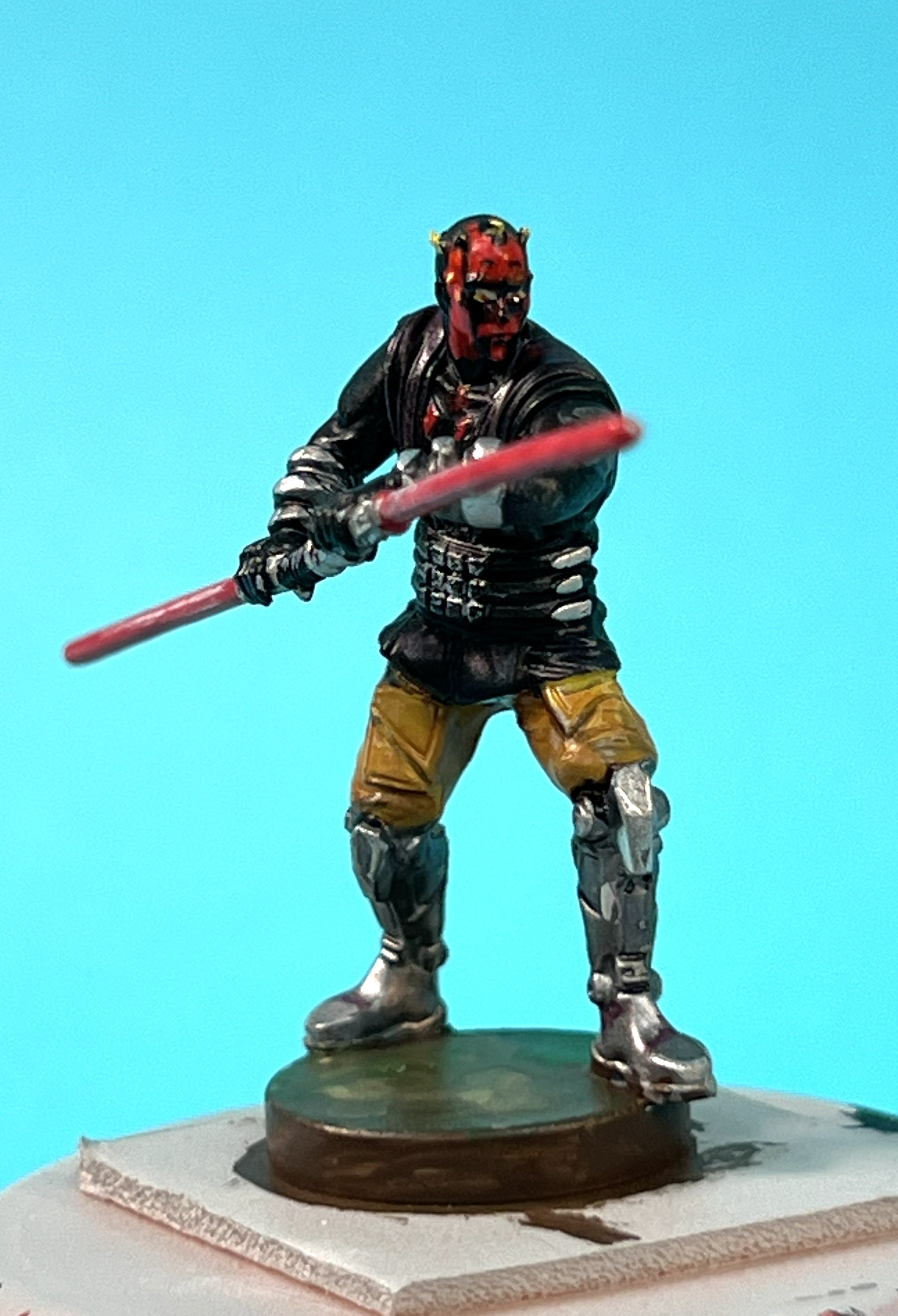 Also reaching out to try develop new skills. Watching a lot of YouTube of more talented folks painting. With this, I finished up another of my sister’s figures from her Star Wars board game. I have recently learned that Darth Maul has red skin with black tatoos apparently applied by his mother. Please do not quote me as this is outside my typical study topic.