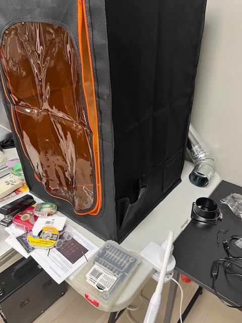 Pics of the plumbing work for my 3D printer exhaust and new shelf for my airbrushing fluids;