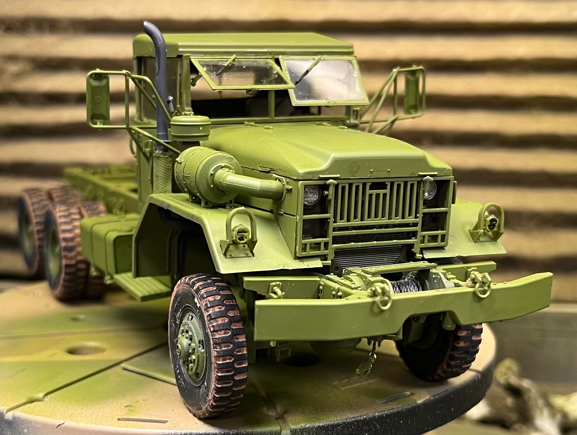 Another few steps for the M543. I will test-fit the cab floor to the frame in future builds. It was a real wiggle to get it to sit in the frame using the two locating prongs. Maybe paint getting in the way………