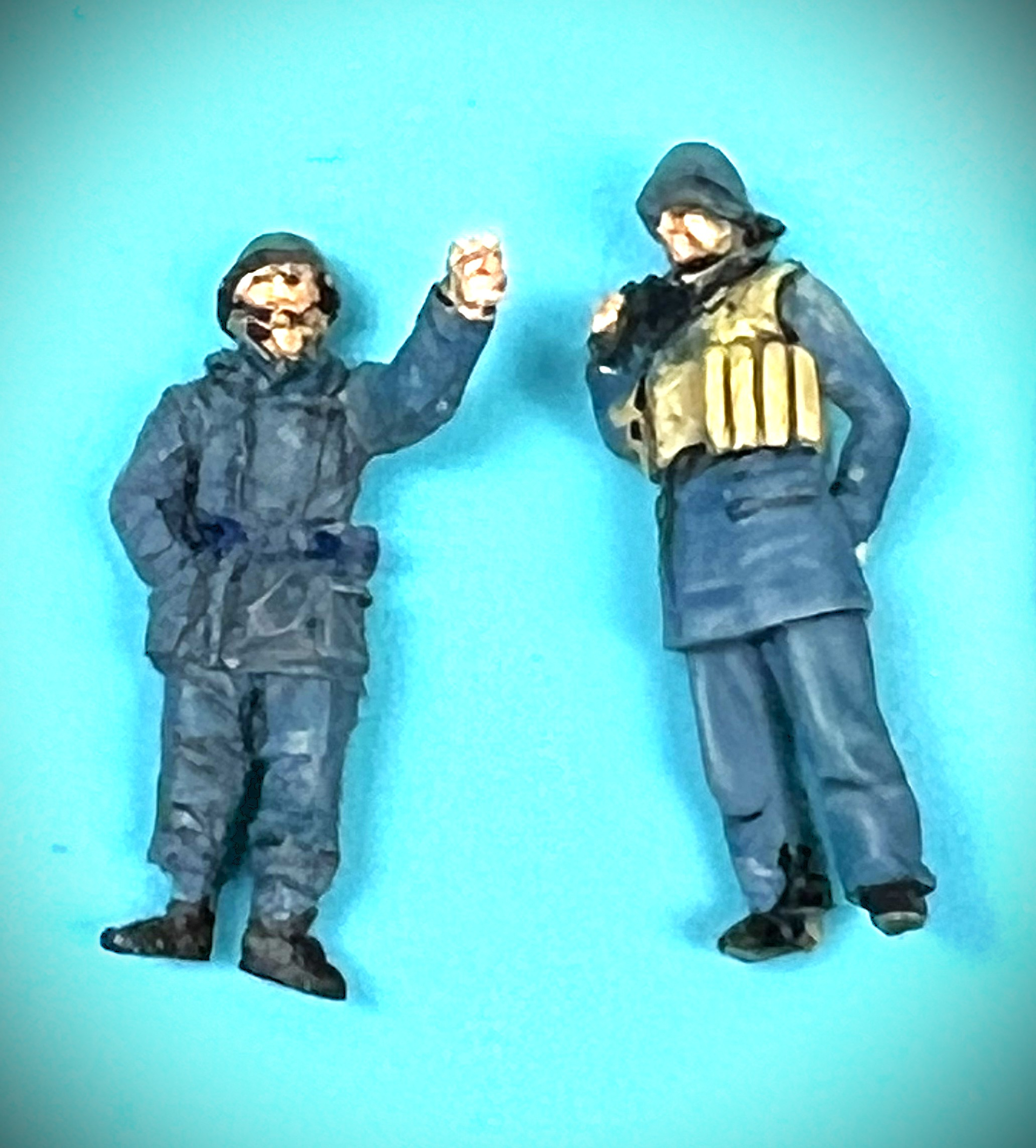 Calling the forward gun crew done! These two 1/72 scale Krieg mariners are now glued into hole in the Revell S-100 Schnell boat. Now who does not love yet another “pointing German”?