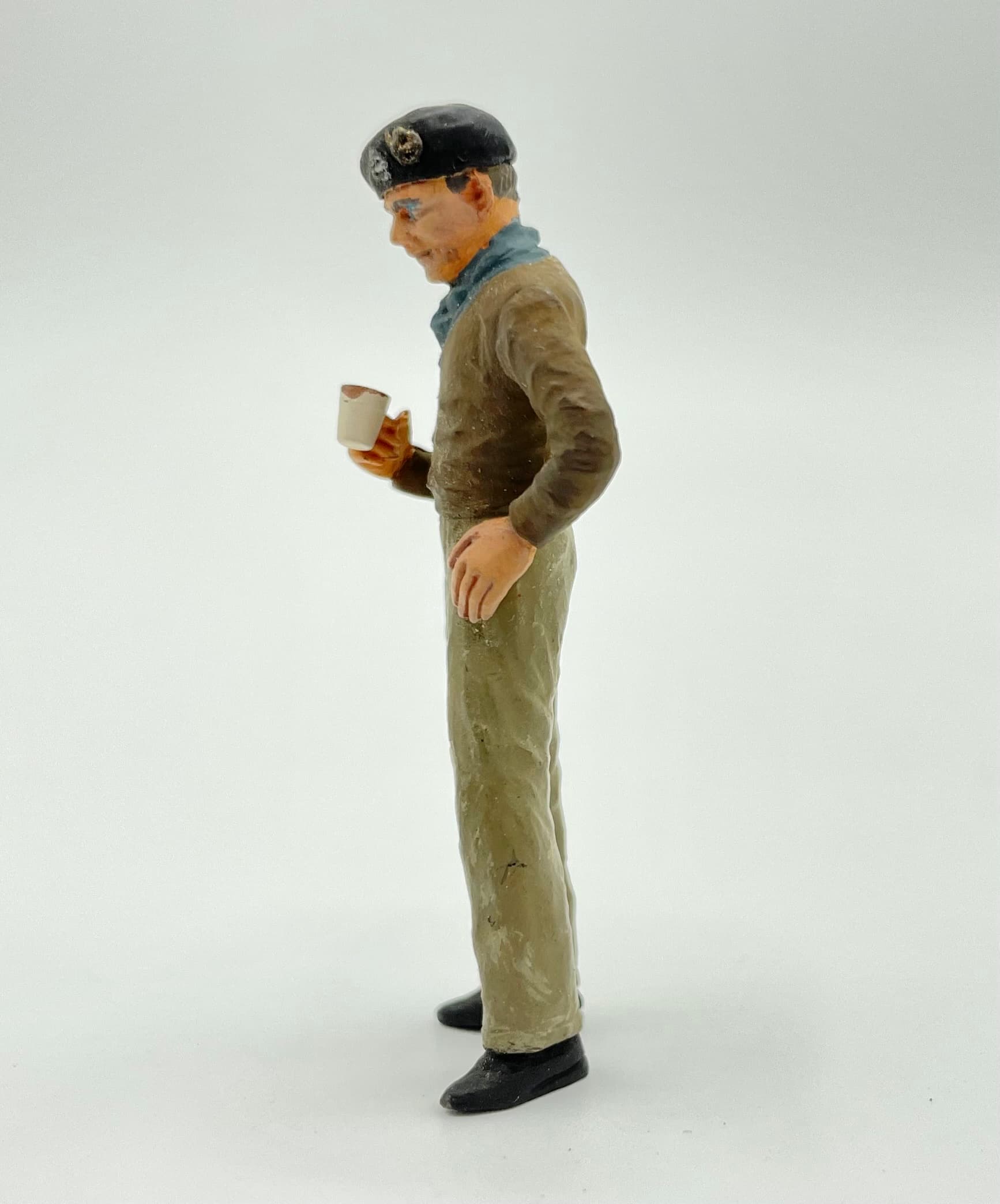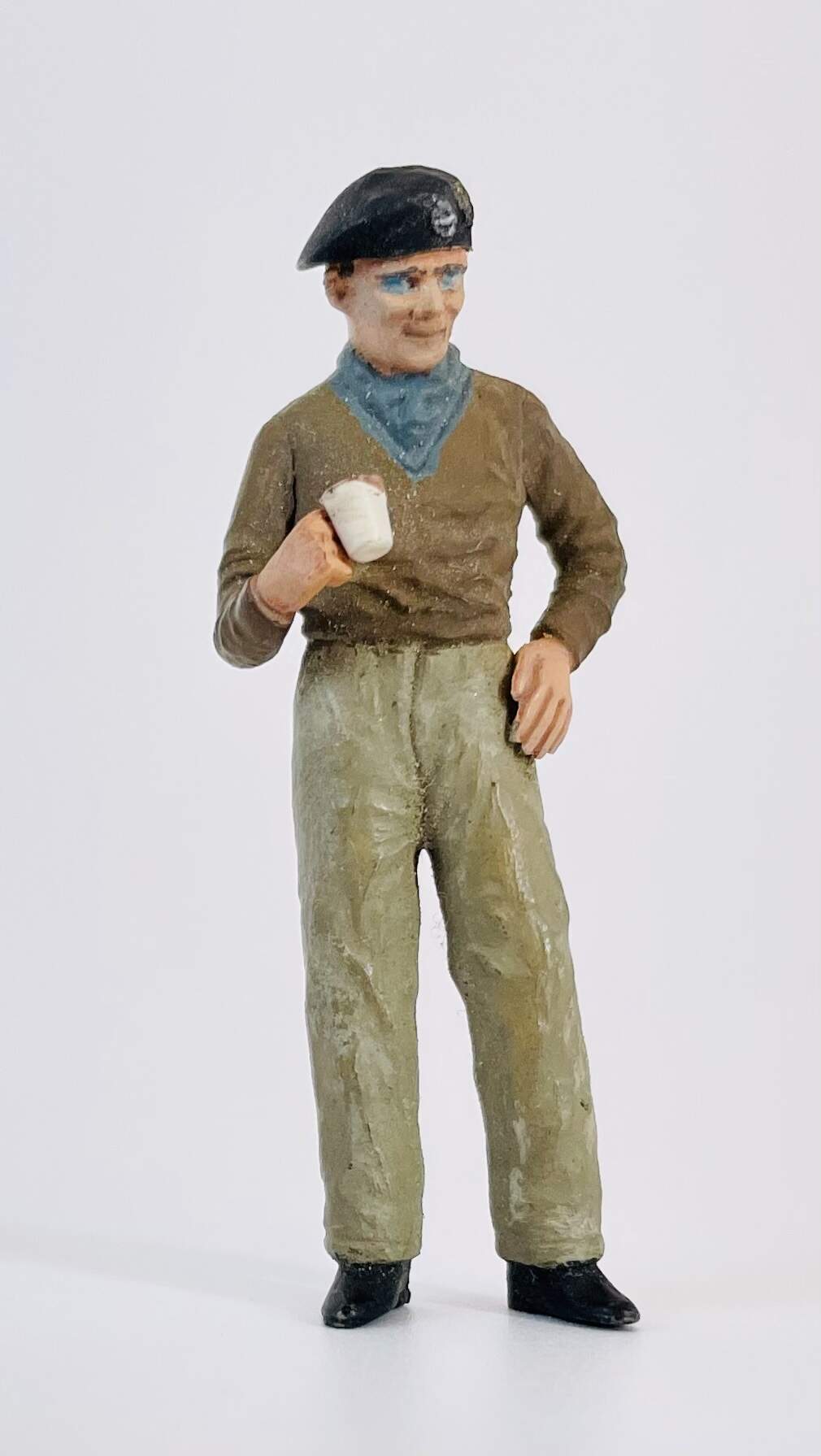 Ah the days of high waisted pants! Yes the face is a little fuller than Monty’s. Tamiya was quite off on the length of the pullover and the size of the cuffs on the trousers too. Well it is a 35 year old mould…