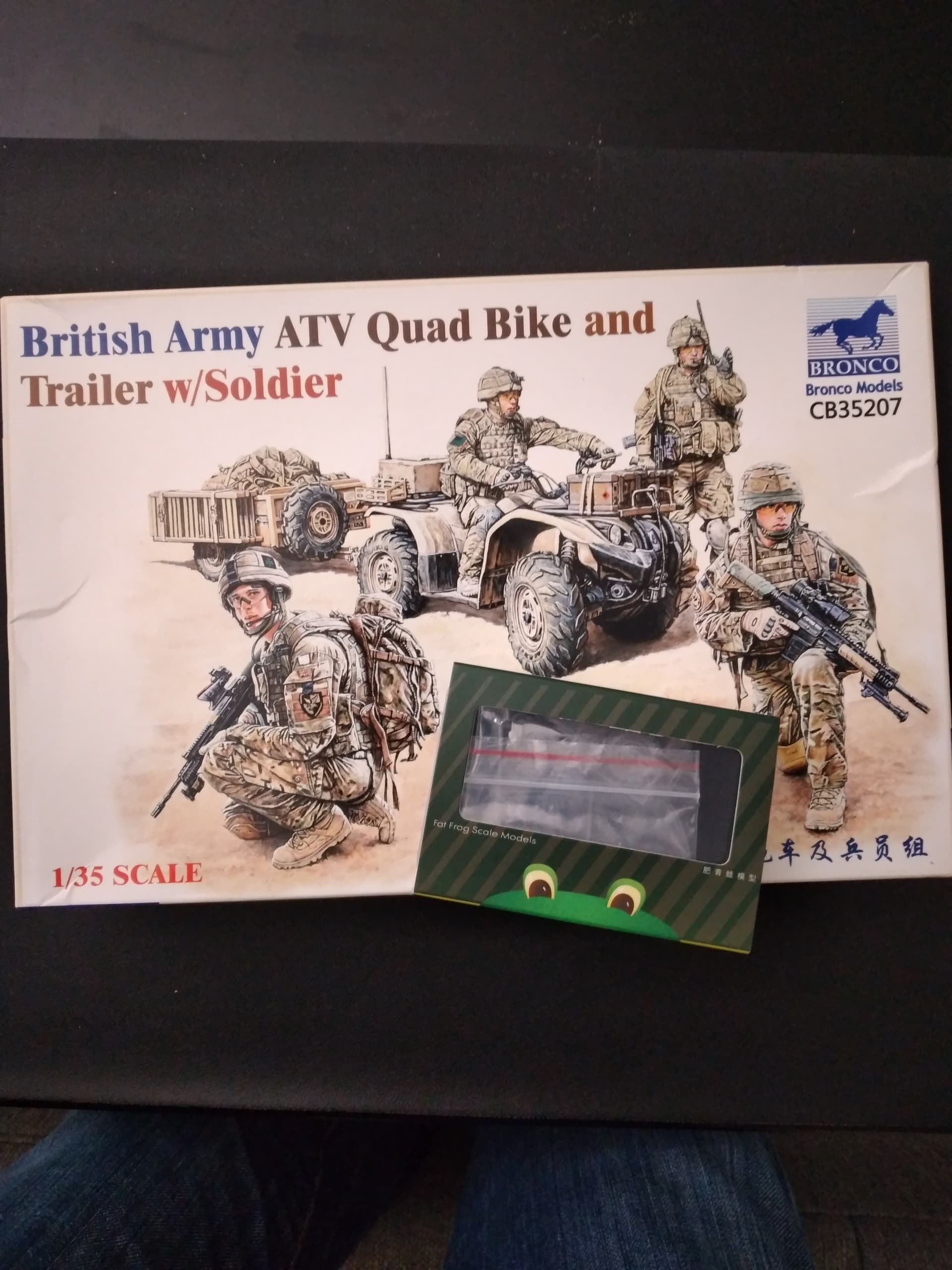 Sagged resin wheels from Fat Frog Scale Models for the quad and its trailer to replace the wheels from Bronco because those one are too narrow.