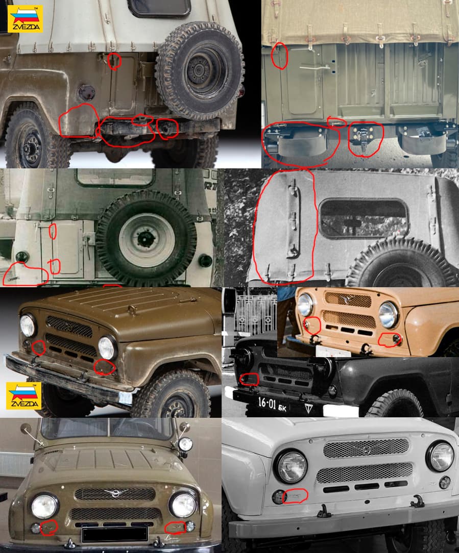 In the Russian-language segment of the Internet, I did not find at least a little significant review/comparison with the model from Trumpeter. There are many complaints about the model itself - it contains parts typical of cars of different years of production. But I didn’t find anything bad about the quality of the castings. The controversy surrounding the model was such that the Karopka model forum had to close the thread discussing new products from Zvezda.