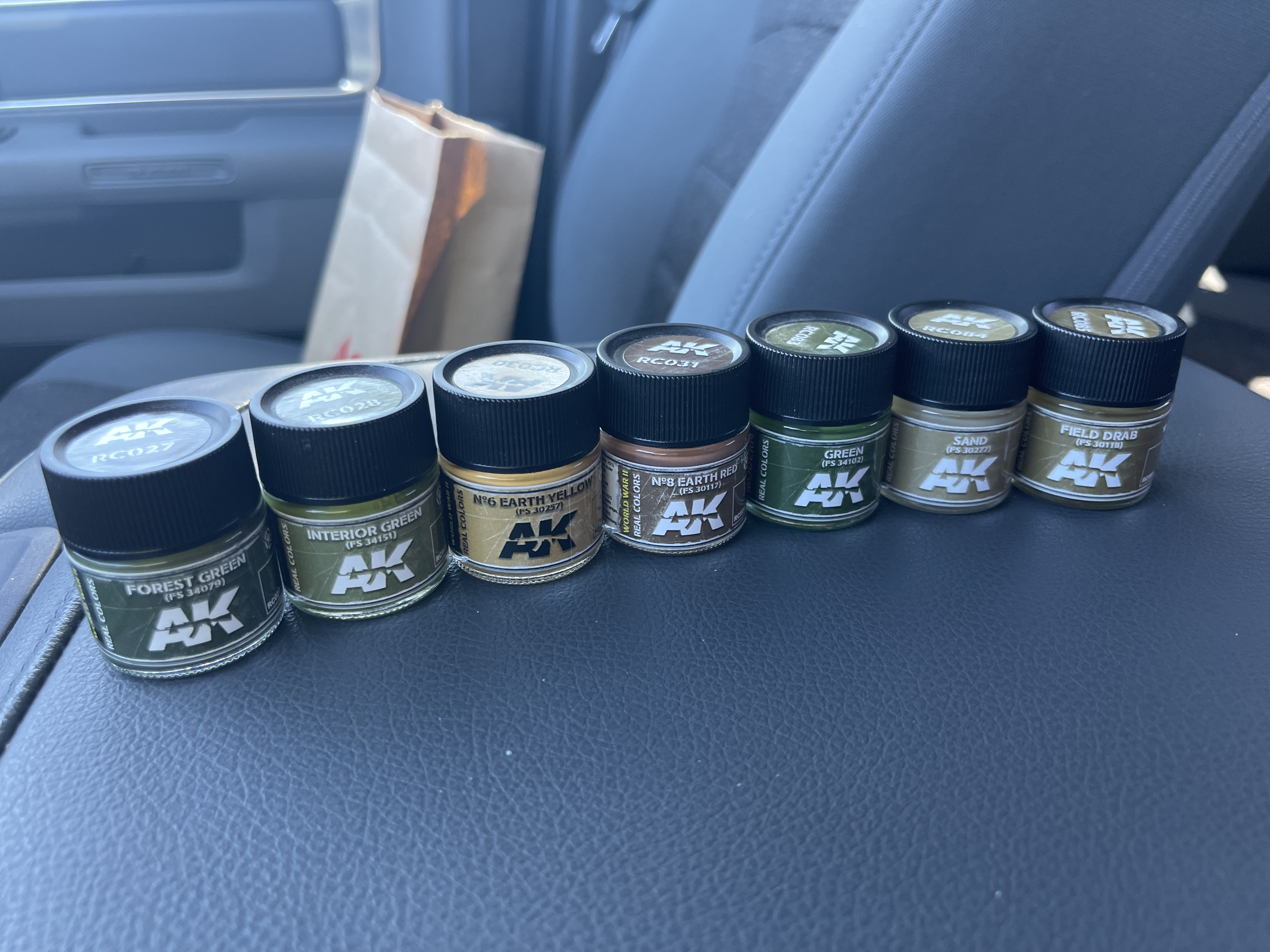 Postman didn’t bring them, but got my hands on “almost” all the MERDC colors offered by AK Interactive on their REAL COLOR line.