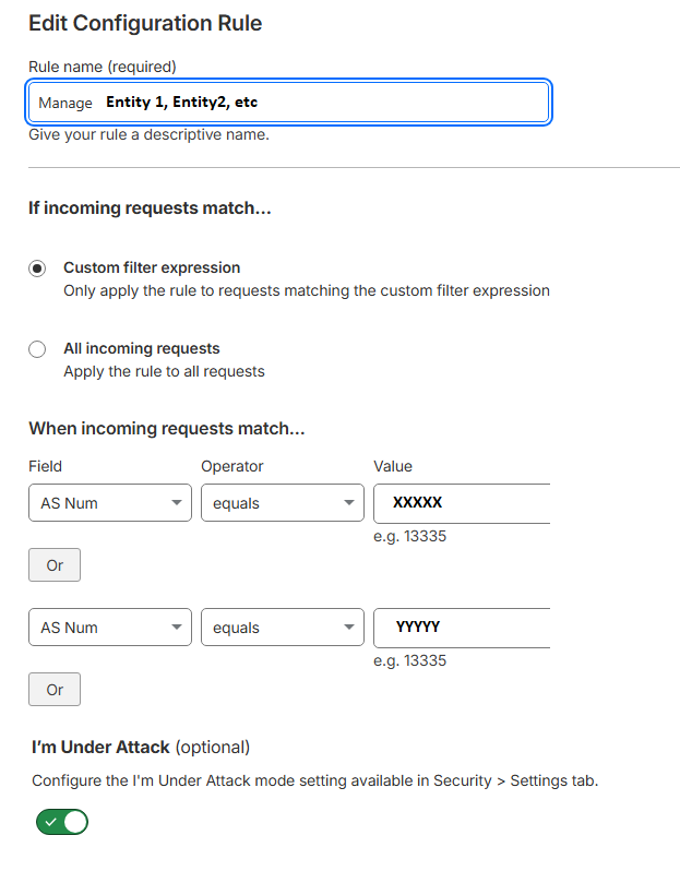 From tomorrow (start of a new month) I’ll be reverting “I’m under attack” on my site and trying to determine a set of rules that does not require that particular setting as it’s suggested as a last resort only by CF.