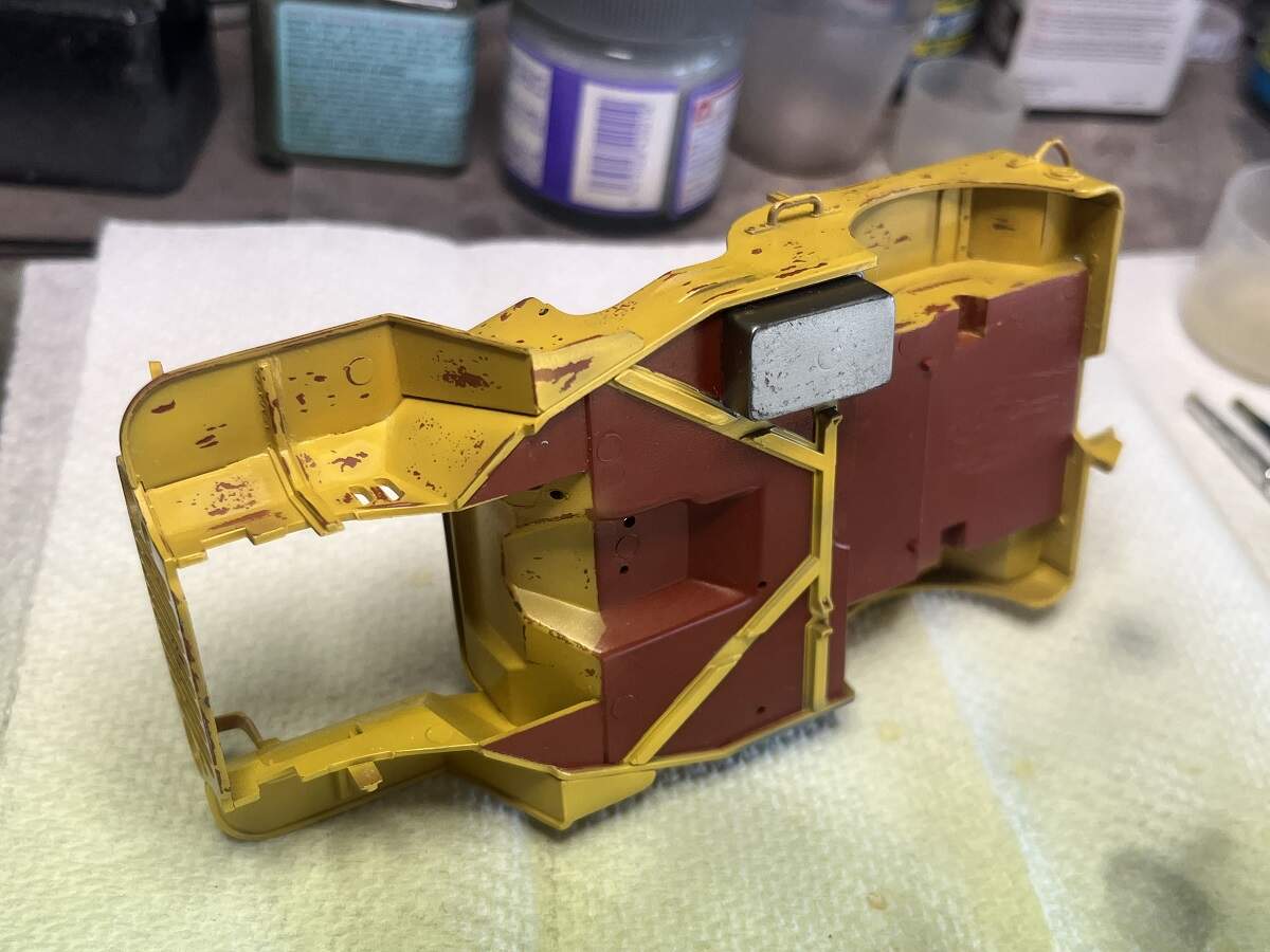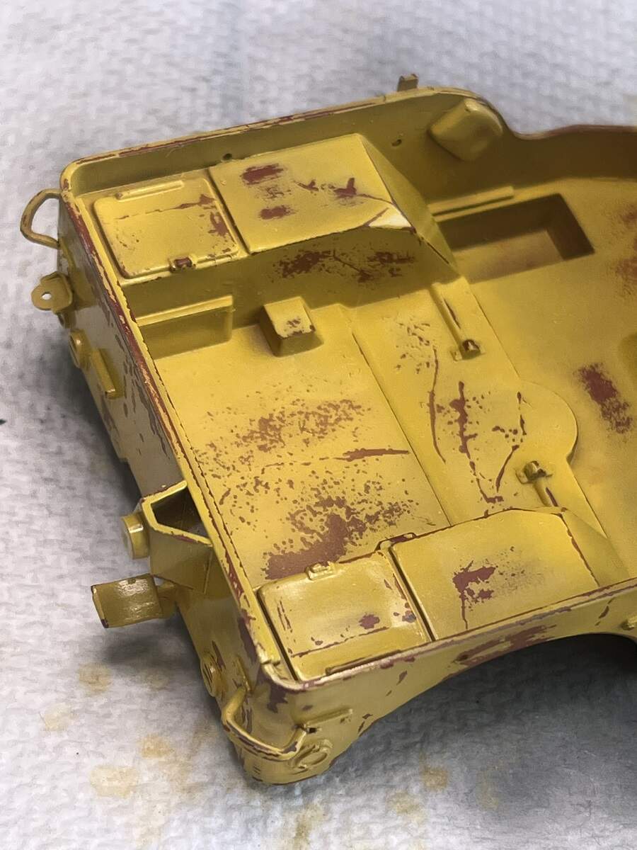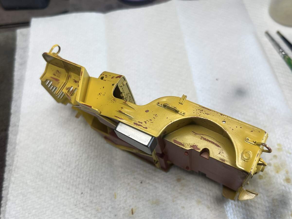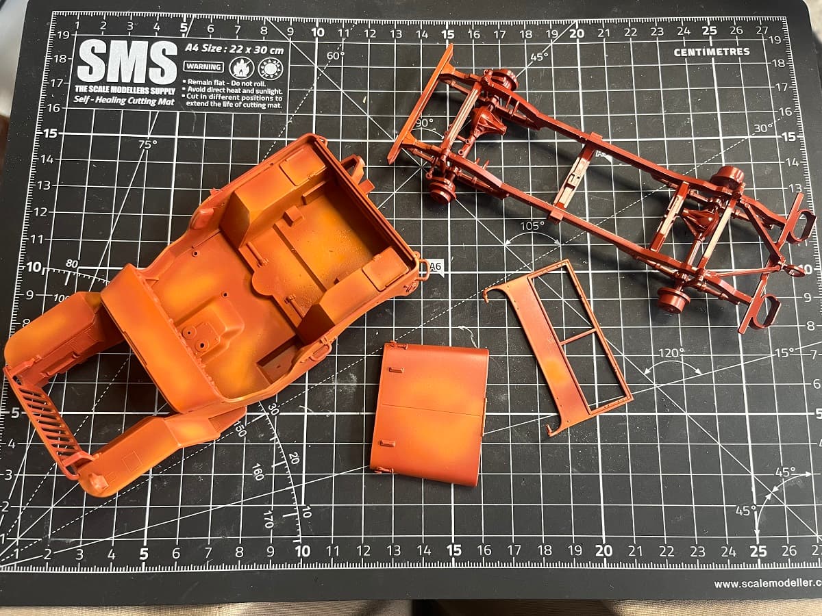 The underside will get a coat of red oxide to match the reference vehicle, and I will also shoot some of the Red Oxide (plus some other rust colours) as a chipping base colour for the rust patches, to be exposed using the hairspray technique.