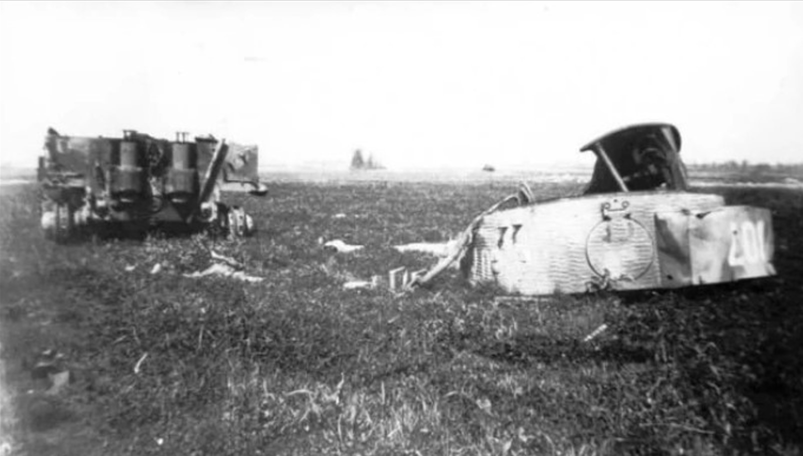 It appears that somebody has rolled this hull forwards and taken the tracks. Most likely it was the Germans. They could have taken other things too.