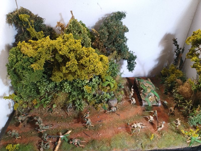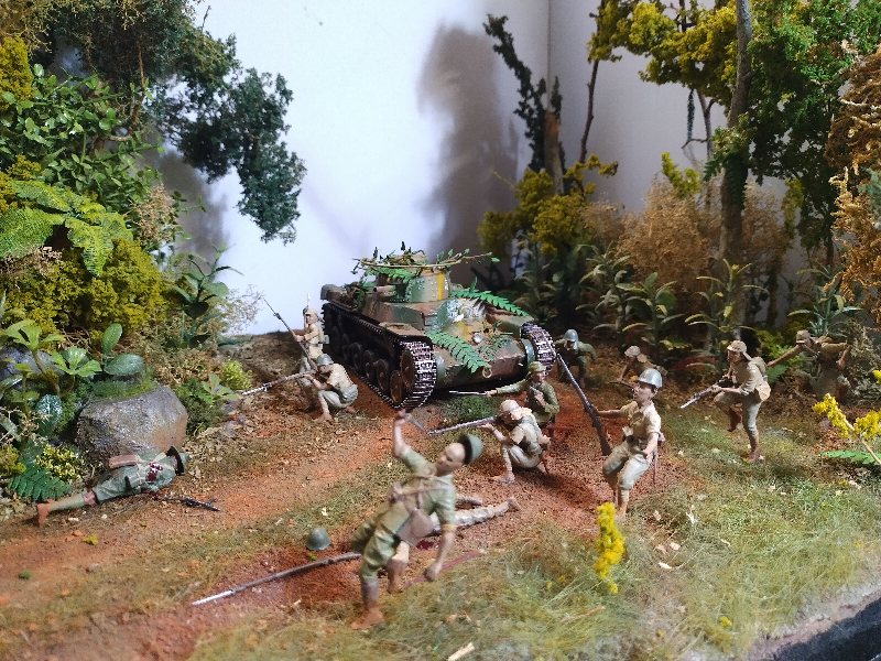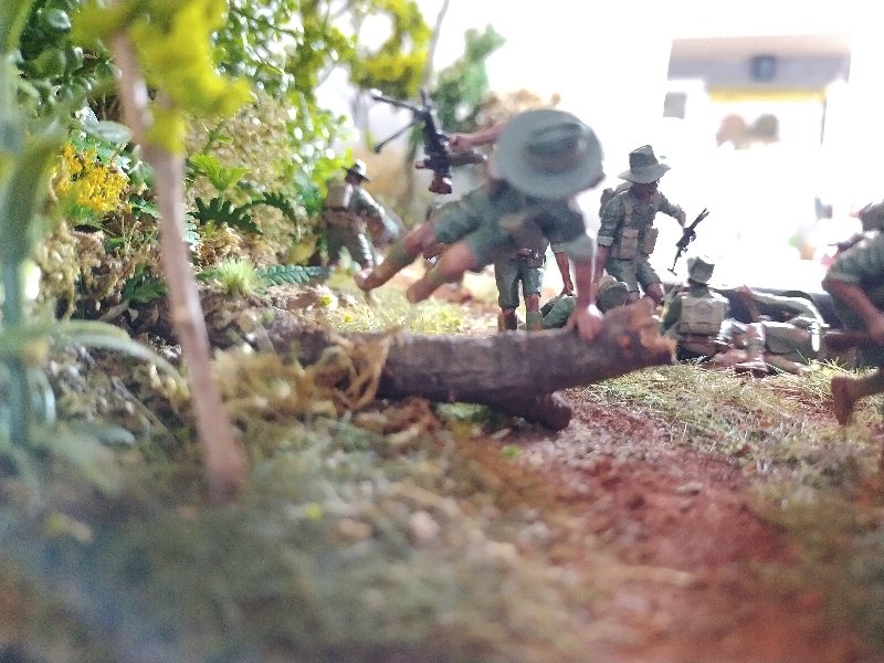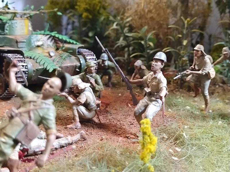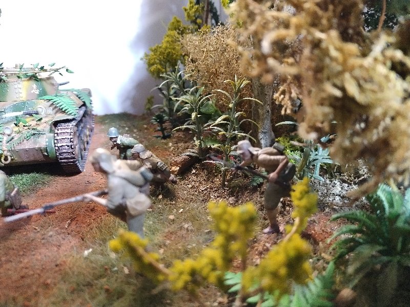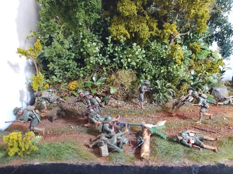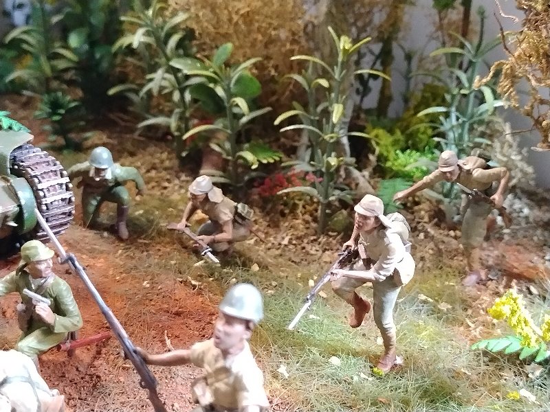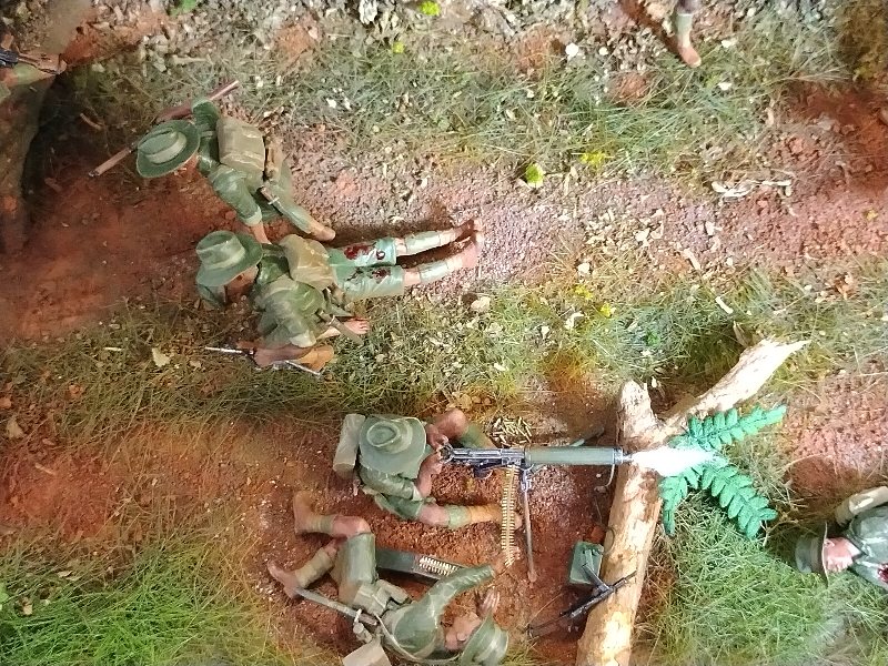 Great dio Christian, it’s quite a challenge to convincingly portray close combat and you nailed it. Best figure has to be the Aussie vaulting the tree trunk! I hesitate to criticise anything because this is an excellent scene and (too) rare, but the uniforms are shiny when they need to be flat/matt…and I hope I’m wrong but the Aussies uniforms look very green, I would have thought they were khaki (?) One other thing, a couple of lost slouch-hats lying on the ground might look good.