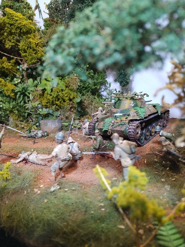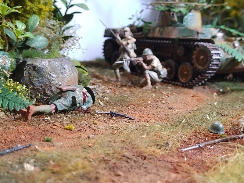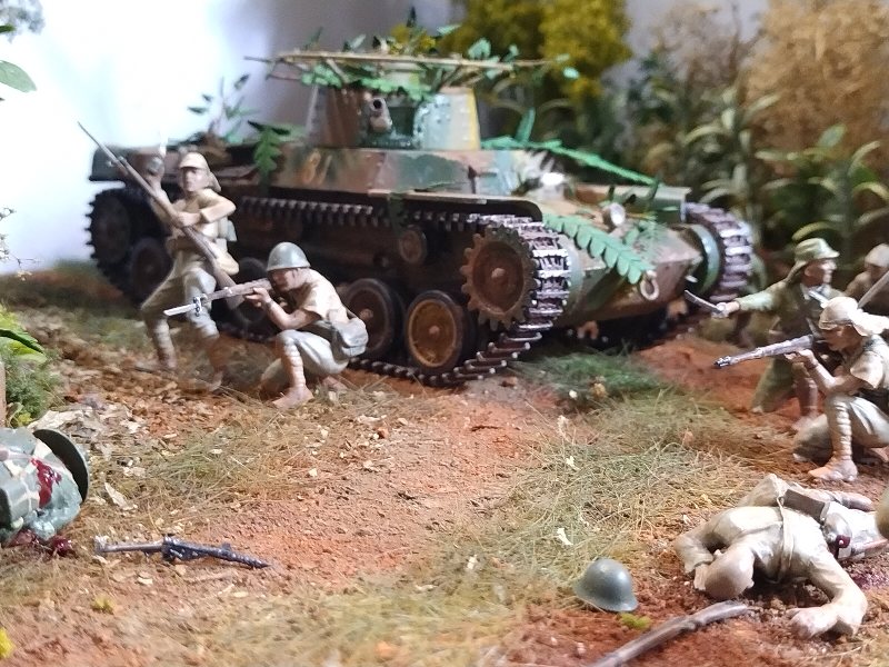 Just a thought… Wouldn’t the crew of the Chi-Ha have spun the turret around to uncover the machine gun in the ball mount at the back of the turret? It seems to me that the MG would be more useful against the infantry than the 57mm gun.
