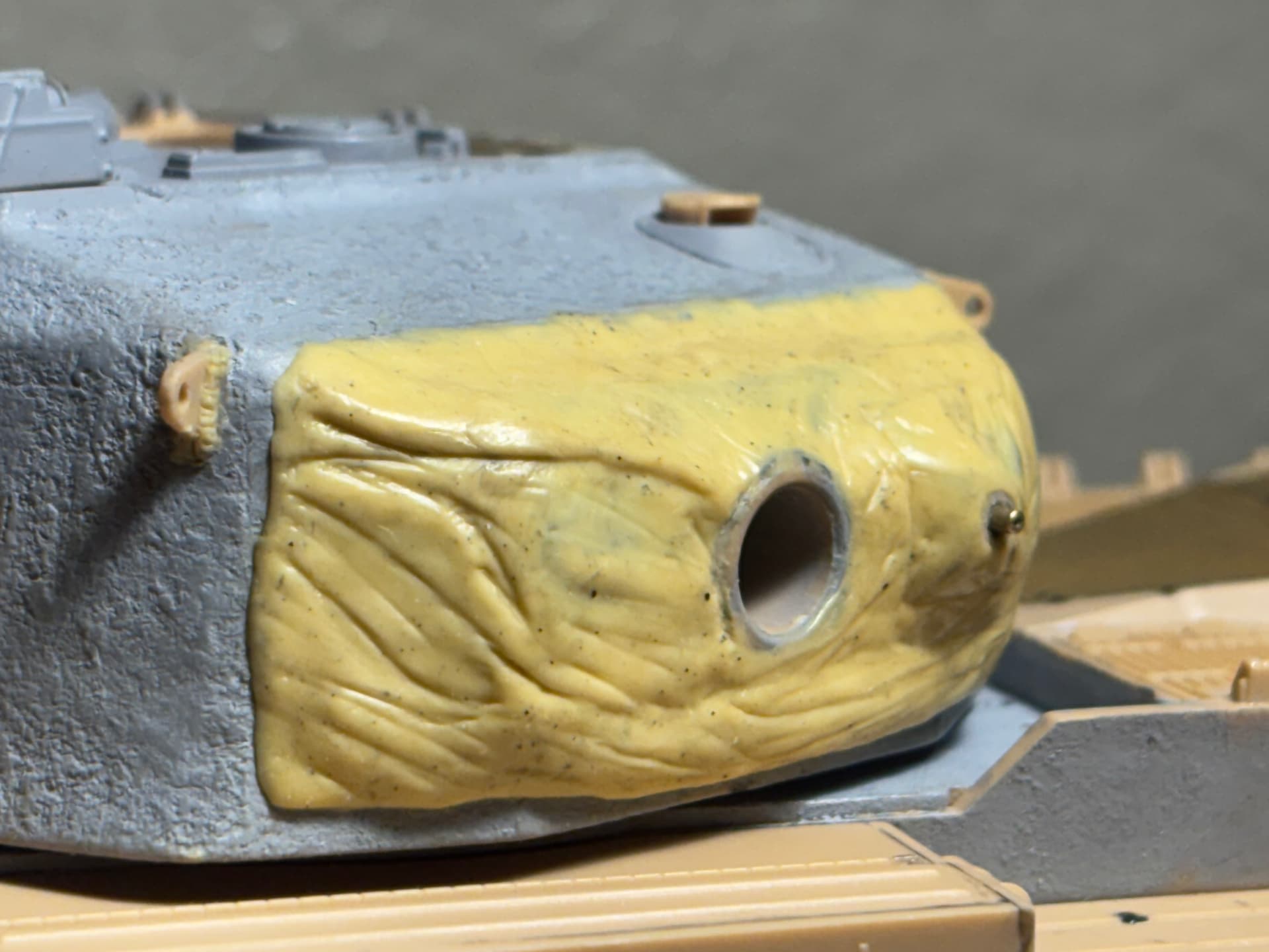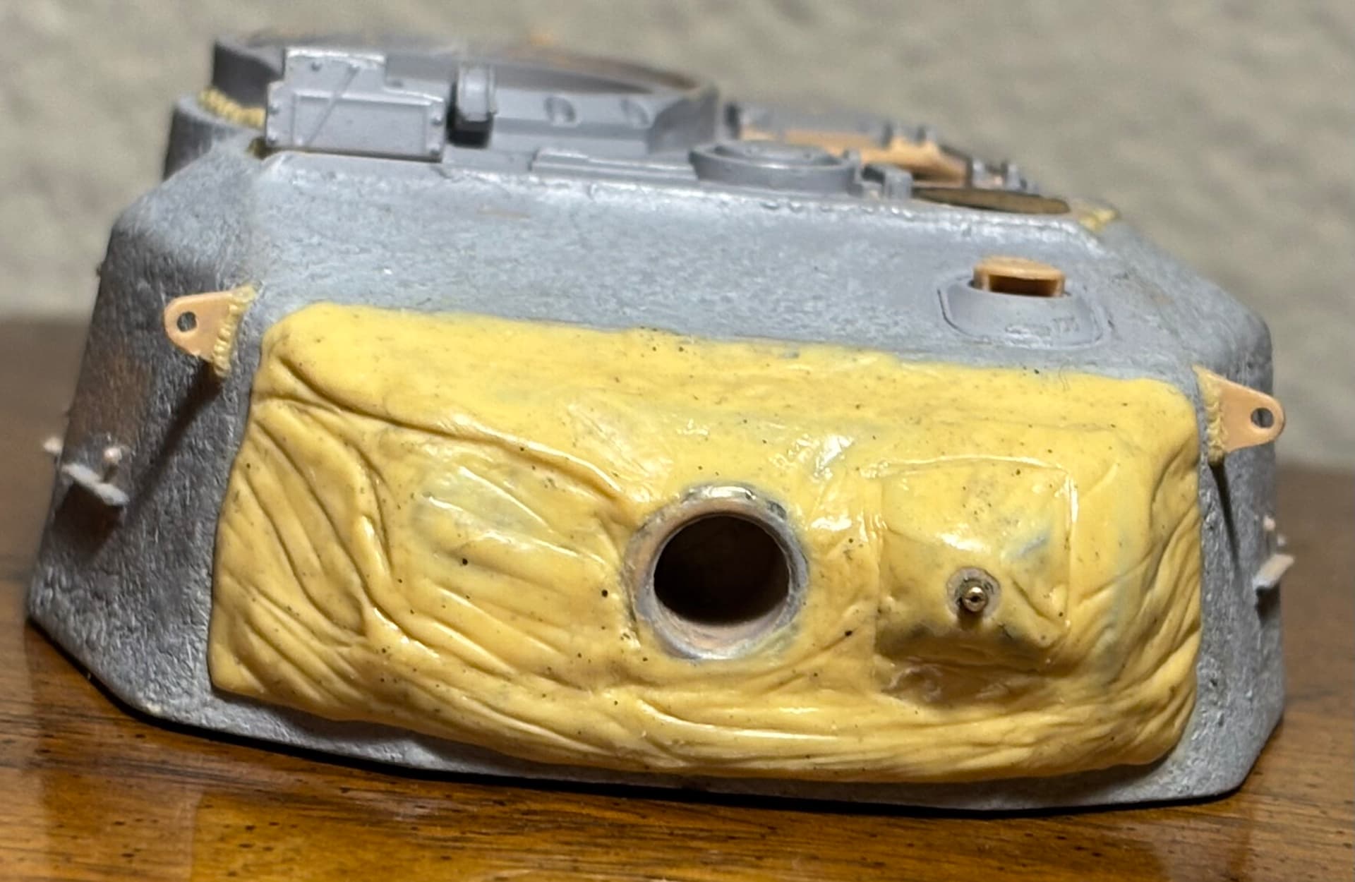 But I got the mantlet cover mostly done yesterday with Tamiya epoxy putty, I feel pretty nice about it but something’s off to me. (I think I gotta add more material on the bottom, it might not be tall enough)